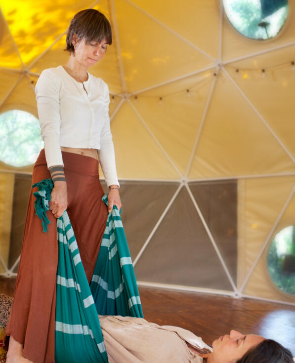 Then an invitation to surrender, abandon the body on the earth, being cradled by the Rebozo (Mexican scarf), which has a soothing, deeply relaxing effect.It is a safe space for physical and emotional reflection-reconnection. A time for healing, a place of transition, acceptance, transformation, to relocate in the present moment.